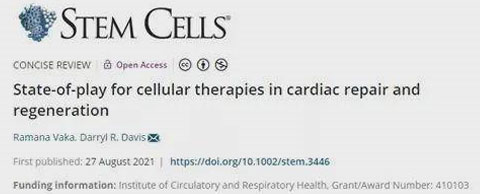 2021 年 8 月 27 日,發(fā)表于 Stem Cells 上的綜述對干細(xì)胞源性心肌細(xì)胞用于心臟修復(fù)和再生研究的最新進展進行了系統(tǒng)總結(jié)。高影響力期刊上的幾項臨床前研究表明,心肌內(nèi)細(xì)胞注射可以改善心肌梗塞后的心臟功能。